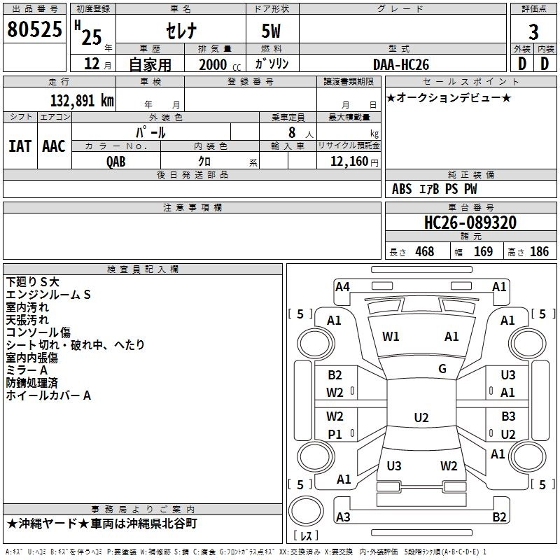 NISSAN SERENA 2013 г., лот № 80525