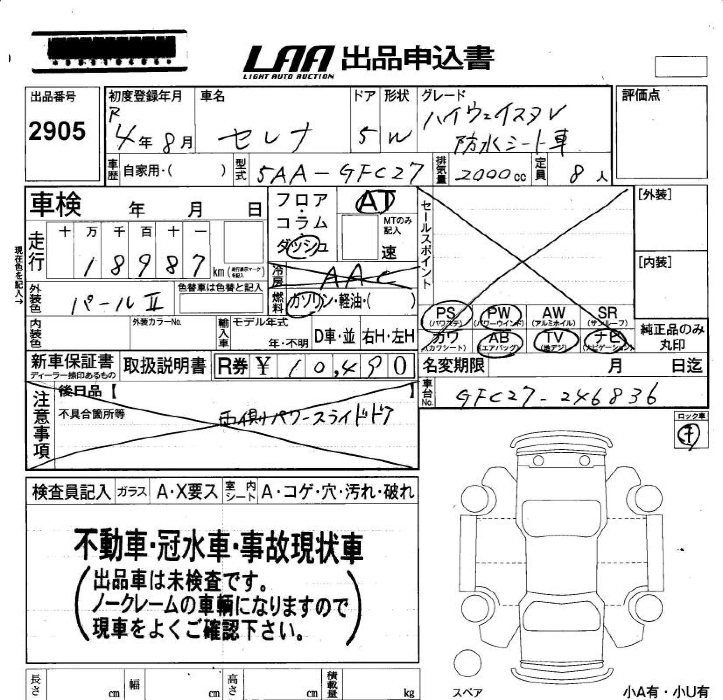 Статус выставлен на аукцион Лот 2905 Аукцион LAA Okayama Дата аукциона 30.01.2026
