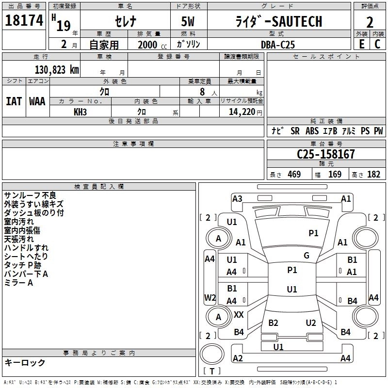 | RIDER HIGH PERFORMANCE SPEC | DBA-C25 | MR20DE(ハイパフォーマンススペック) | FF | CVT | 1997cc | 147ps(108kW)/5200rpm | AИ-95 | 2 798 250 | |