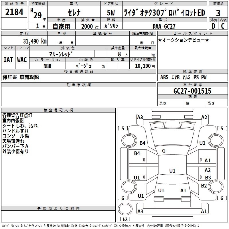 | RIDER V SELECTION BLACK LEATHER | DAA-GC27 | MR20DD | FF | CVT | 1997cc | 150ps(110kW)/6000rpm | AИ-92 | 3 534 840 | |