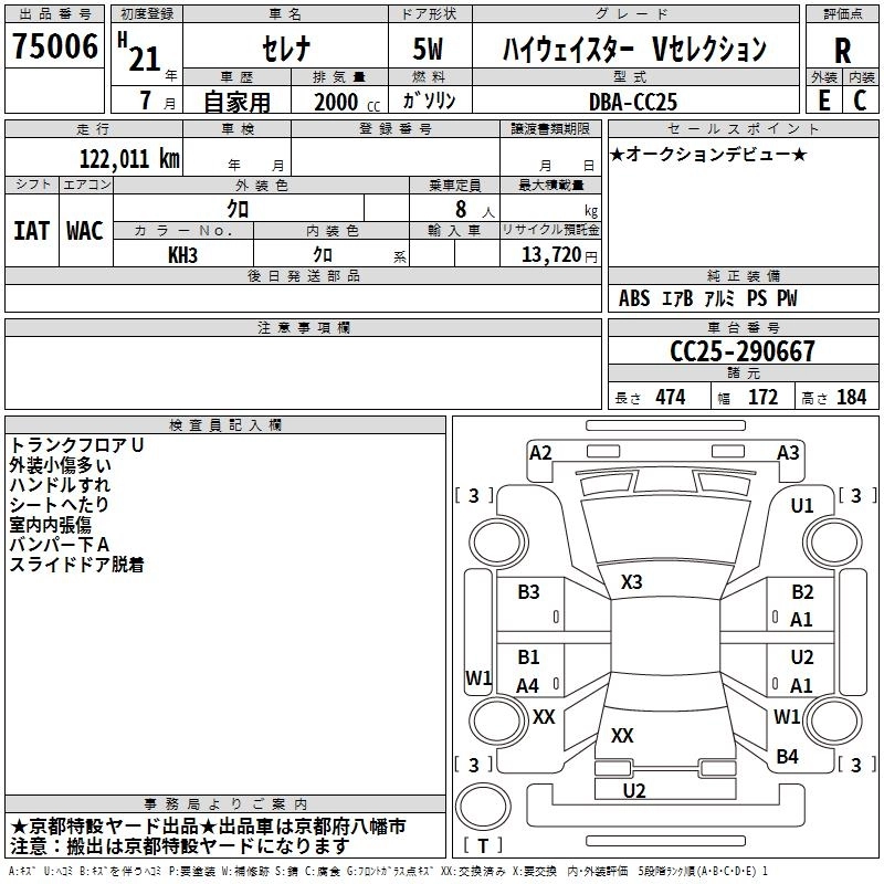 | 20S NAVI PLUS STEP SELECTION | DBA-C25 | MR20DE | FF | CVT | 1997cc | 137ps(101kW)/5200rpm | AИ-92 | 2 661 750 | |