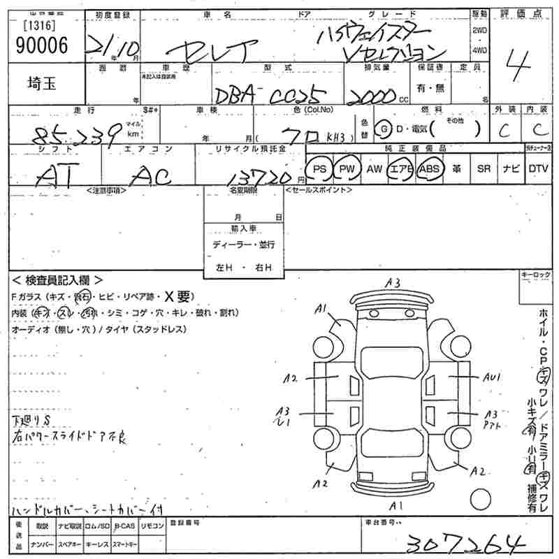 | HIGHWAY STAR V AERO SELECTION | DBA-CC25 | MR20DE | FF | CVT | 1997cc | 137ps(101kW)/5200rpm | AИ-92 | 2 625 000 |