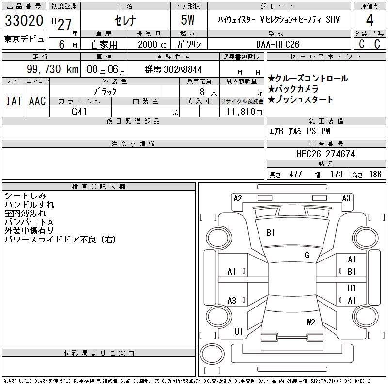 NISSAN SERENA 2015 г., лот № 33020
