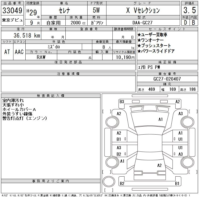 | RIDER V SELECTION | DAA-GC27 | MR20DD | FF | CVT | 1997cc | 150ps(110kW)/6000rpm | AИ-92 | 3 335 040 | |