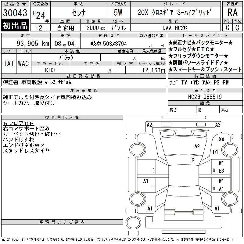 NISSAN SERENA 2012 г., лот № 30043