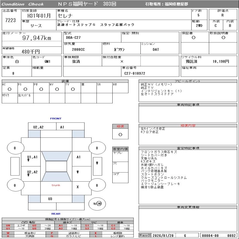 98 000 км КузовC27 Комплектация MEETING AND SENDING OFF AUTO STEP S/S MANY F.. PACK