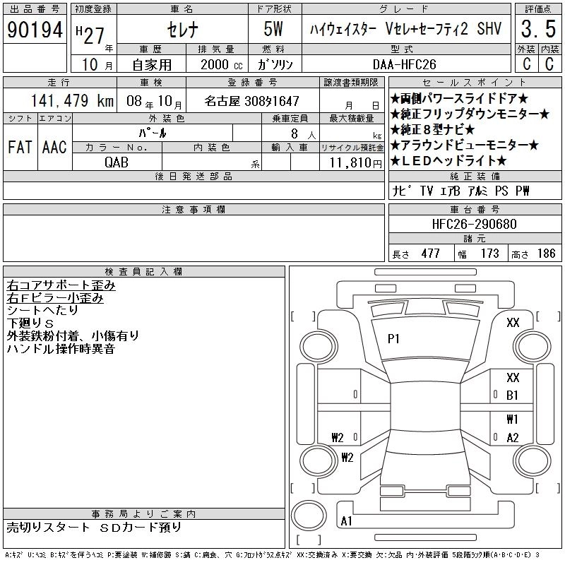 | HIGHWAY STAR S EDITION | DBA-FPC26 | MR20DD | FF | CVT | 1997cc | 147ps(108kW)/5600rpm | AИ-92 | 2 398 680 | |