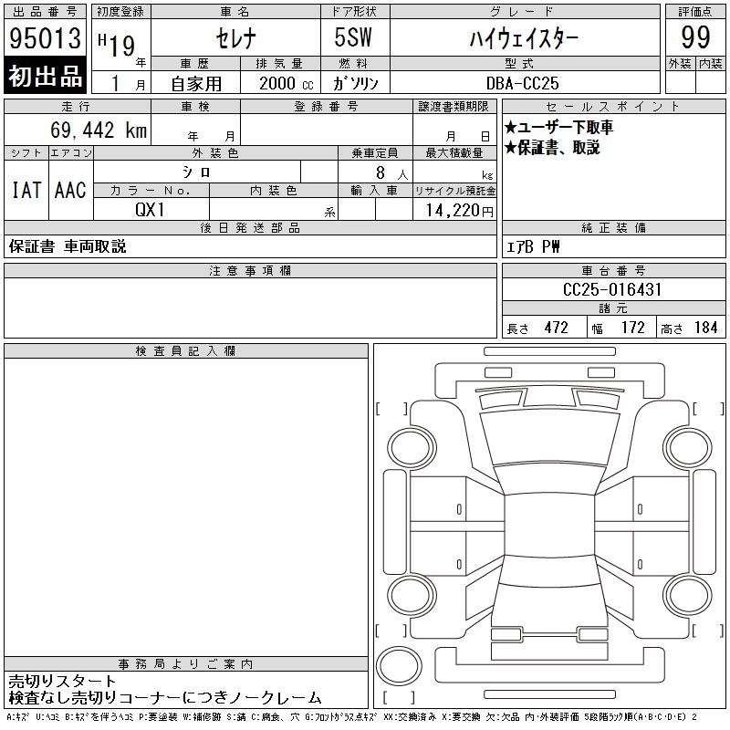 | HIGHWAY STAR | DBA-CC25 | MR20DE | FF | CVT | 1997cc | 137ps(101kW)/5200rpm | AИ-92 | 2 436 000 | |
