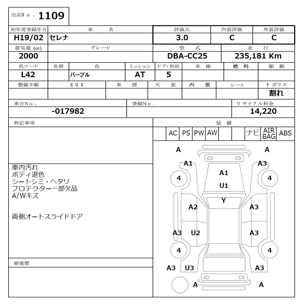 | 20S | DBA-C25 | MR20DE | FF | CVT | 1997cc | 137ps(101kW)/5200rpm | AИ-92 | 2 131 500 |