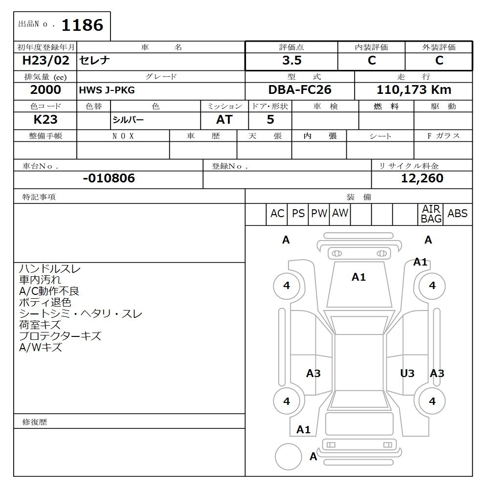 | HIGHWAY STAR V AERO SELECTION | DBA-FC26 | MR20DD | FF | CVT | 1997cc | 147ps(108kW)/5600rpm | AИ-92 | 2 795 100 |