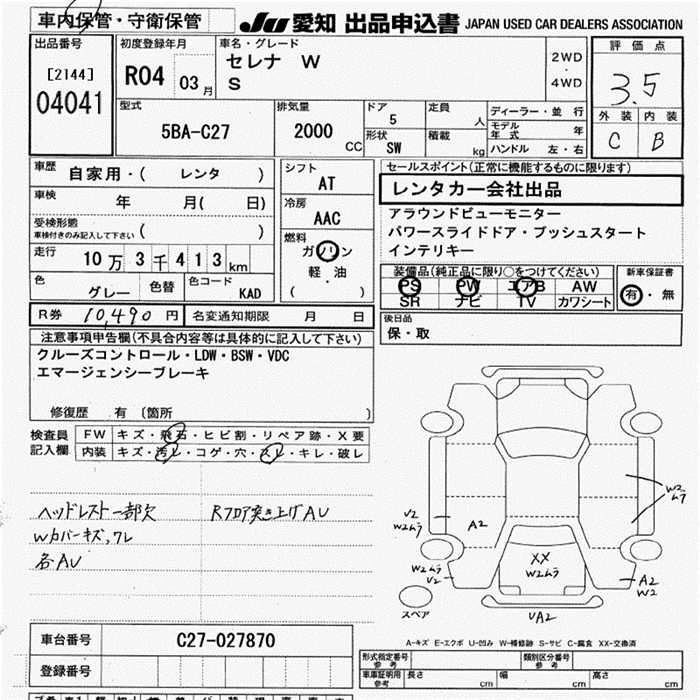Статус выставлен на аукцион Лот 4041 Аукцион JU Aichi Дата аукциона 05.02.2026