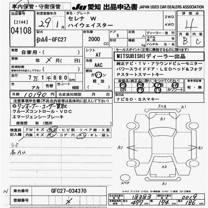 | X V SELECTION | DAA-GNC27 | MR20DD | Full-time 4WD | CVT | 1997cc | 150ps(110kW)/6000rpm | AИ-92 | 2 918 160 | |