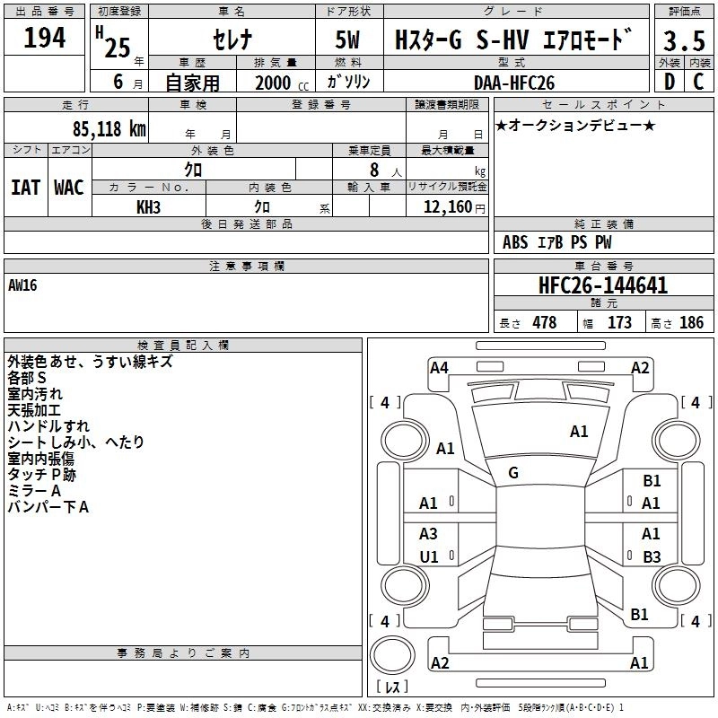NISSAN SERENA 2013 г., лот № 194