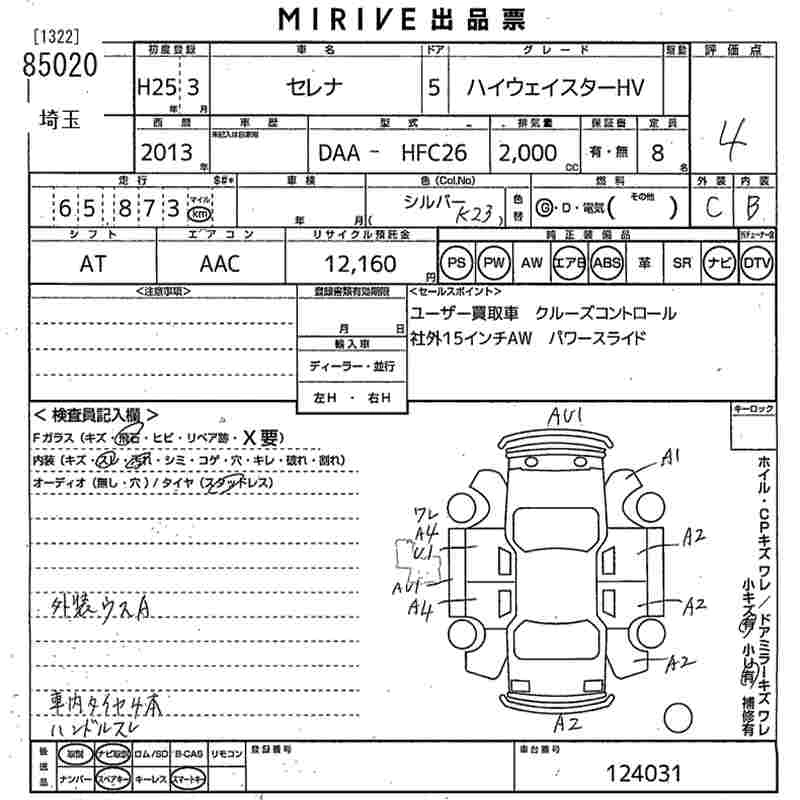 Статус выставлен на аукцион Лот 85020 Аукцион MIRIVE Saitama Дата аукциона 18.03.2026