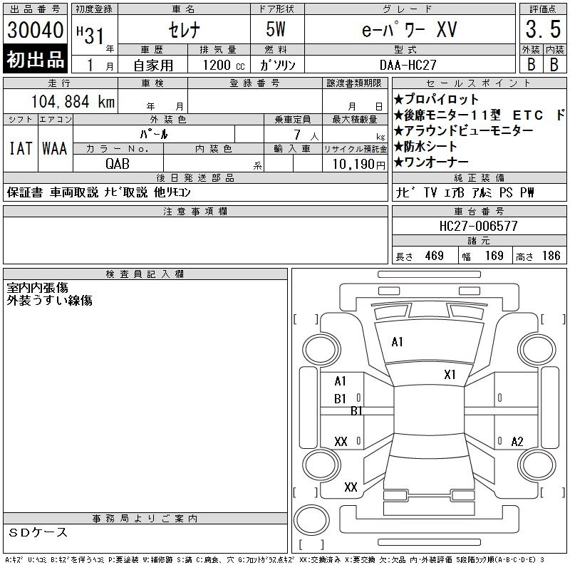 | E-POWER AUTECH V PACKAGE | DAA-HFC27 | HR12DE | FF | CVT | 1198cc | 84ps(62kW)/6000rpm | AИ-92 | 3 773 000 | |