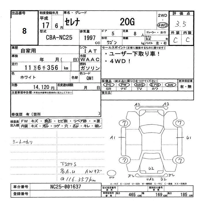 | 20S | CBA-NC25 | MR20DE | Full-time 4WD | CVT | 1997cc | 129ps(95kW)/5200rpm | AИ-92 | 2 383 500 | |