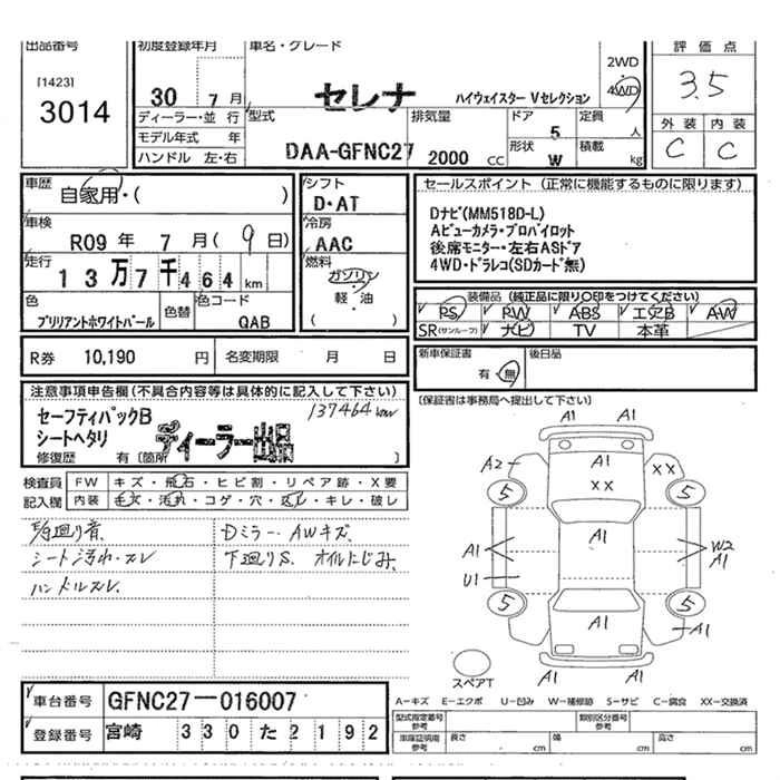 | AUTECH V PACKAGE | DAA-GNC27 | MR20DD | Full-time 4WD | CVT | 1997cc | 150ps(110kW)/6000rpm | AИ-92 | 3 350 160 | |