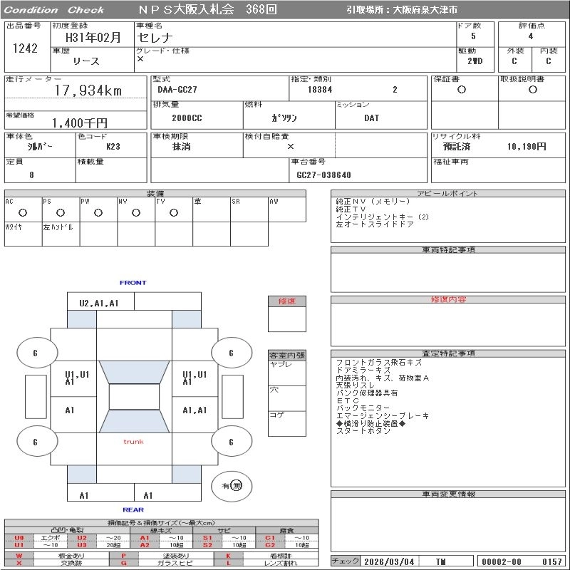| AUTECH V PACKAGE | DAA-GC27 | MR20DD | FF | CVT | 1997cc | 150ps(110kW)/6000rpm | AИ-92 | 3 236 200 |