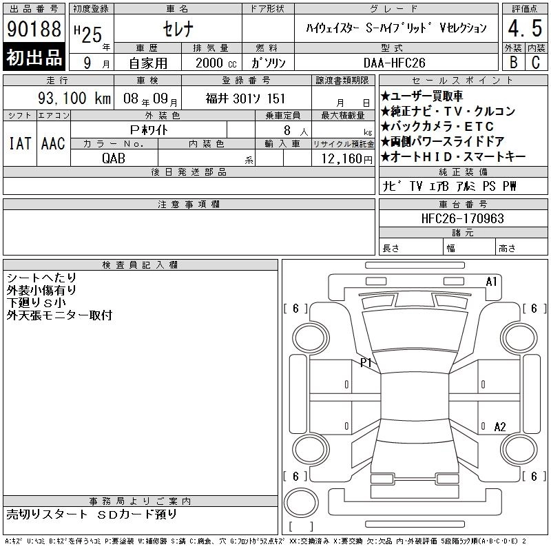NISSAN SERENA 2013 г., лот № 90188