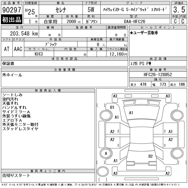 | HIGHWAY STAR S-HYBRID V SELECTION | DAA-HFC26 | MR20DD | FF | CVT | 1997cc | 147ps(108kW)/5600rpm | AИ-92 | 2 661 750 |
