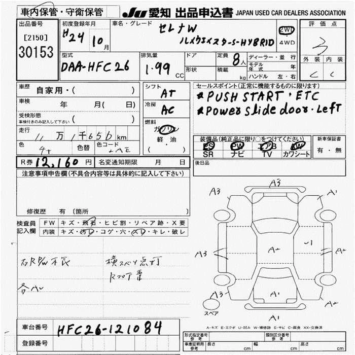 NISSAN SERENA 2012 г., лот № 30153
