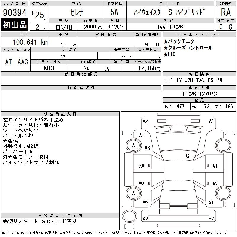 NISSAN SERENA 2013 г., лот № 90394