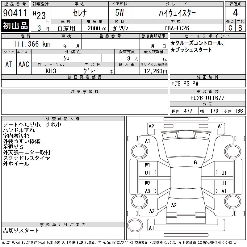 | HIGHWAY STAR V SELECTION | DBA-FC26 | MR20DD | FF | CVT | 1997cc | 147ps(108kW)/5600rpm | AИ-92 | 2 653 350 |