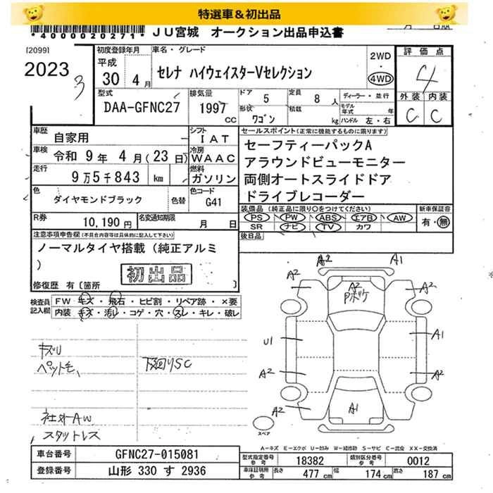 | HIGHWAY STAR V SELECTION II | DAA-GFC27 | MR20DD | FF | CVT | 1997cc | 150ps(110kW)/6000rpm | AИ-92 | 2 874 960 | |
