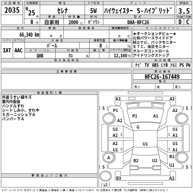 | HIGHWAY STAR S-HYBRID V SELECTION | DAA-HFC26 | MR20DD | FF | CVT | 1997cc | 147ps(108kW)/5600rpm | AИ-92 | 2 661 750 |