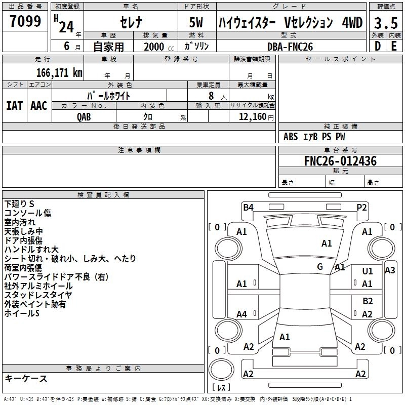 Год выпуска2012 Пробег 166 000 км КузовFNC26 Комплектация HIGHWAY STAR V SELECTION 4WD