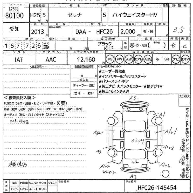 | HIGHWAY STAR S-HYBRID V SELECTION | DAA-HFC26 | MR20DD | FF | CVT | 1997cc | 147ps(108kW)/5600rpm | AИ-92 | 2 661 750 |