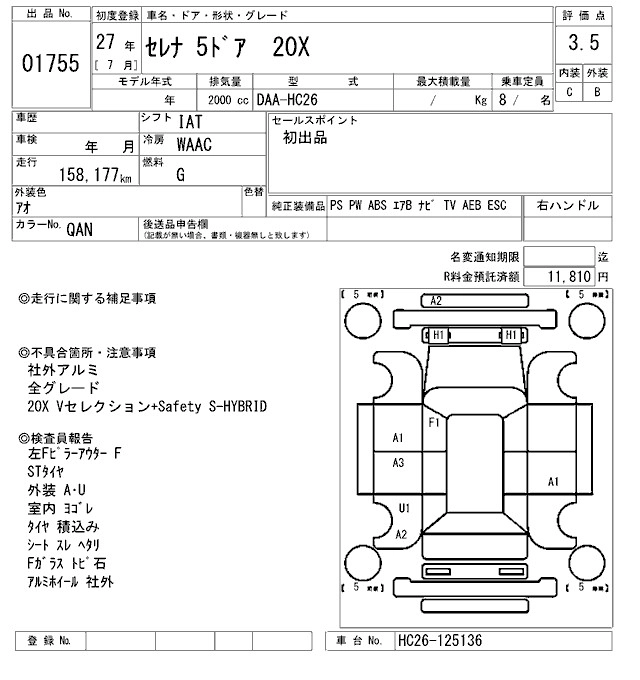 | 20S | DBA-C26 | MR20DD | FF | CVT | 1997cc | 147ps(108kW)/5600rpm | AИ-92 | 2 246 400 |