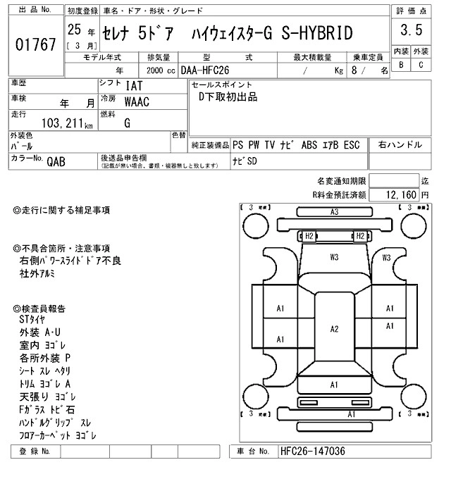 | 20G S-HYBRID | DAA-HC26 | MR20DD | FF | CVT | 1997cc | 147ps(108kW)/5600rpm | AИ-92 | 2 688 000 | |