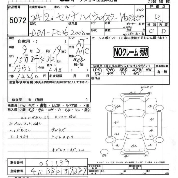 | 20S | DBA-NC26 | MR20DD | Full-time 4WD | CVT | 1997cc | 144ps(106kW)/5600rpm | AИ-92 | 2 436 000 | |