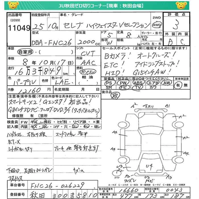 | HIGHWAY STAR V AERO MODE | DBA-FNC26 | MR20DD | Full-time 4WD | CVT | 1997cc | 144ps(106kW)/5600rpm | AИ-92 | 2 932 650 | |