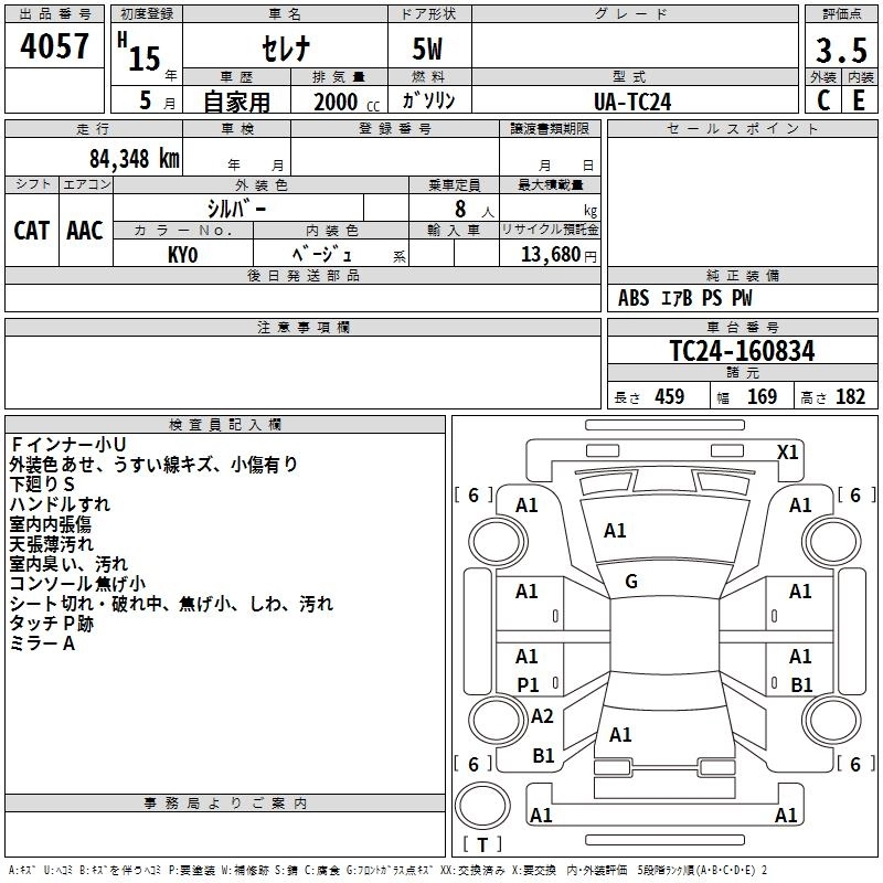 | V-G 70TH-II | UA-TC24 | QR20DE(NEO) | FF | CVT | 1998cc | 147ps(108kW)/6000rpm | AИ-92 | 2 140 000 | |
