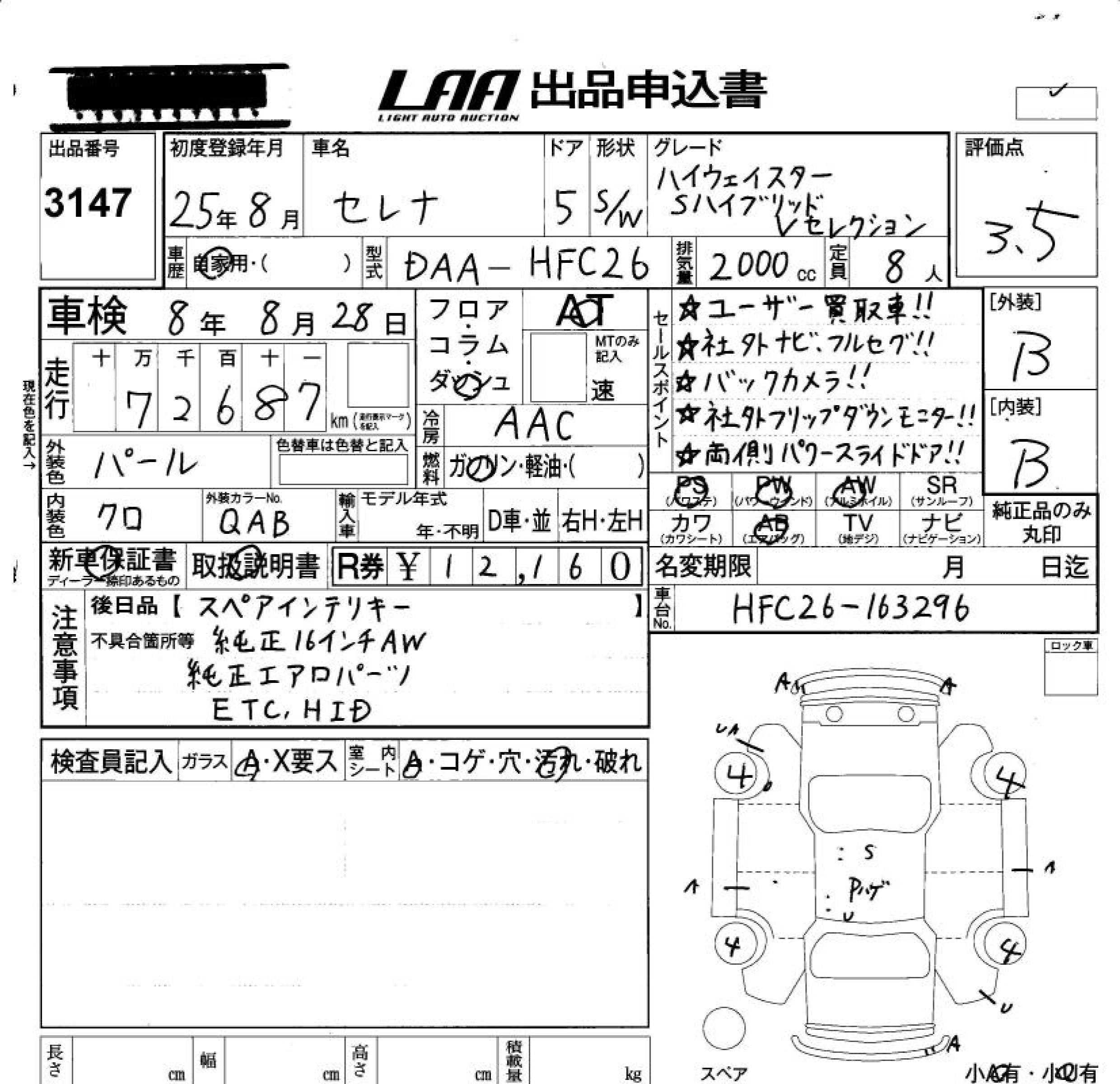NISSAN SERENA 2013 г., лот № 3147