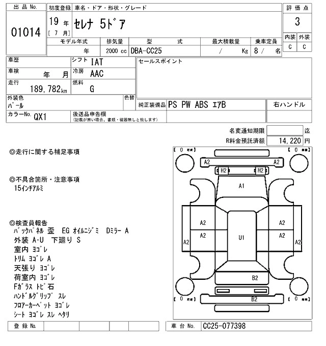 | RIDER | DBA-NC25 | MR20DE | Full-time 4WD | CVT | 1997cc | 129ps(95kW)/5200rpm | AИ-92 | 2 819 250 | |