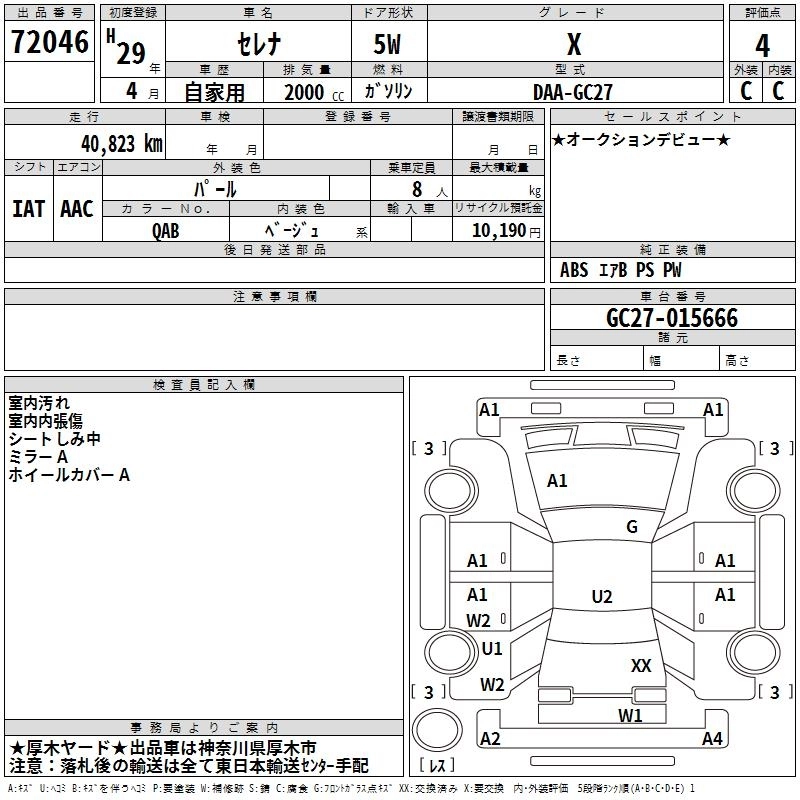 NISSAN SERENA 2017 г., лот № 72046