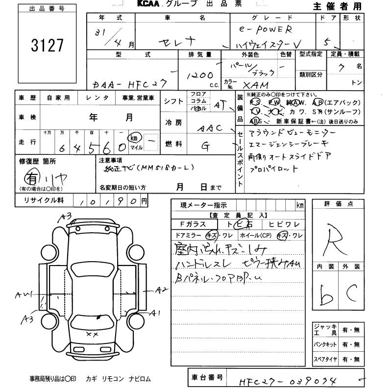 | E-POWER AUTECH V PACKAGE | DAA-HFC27 | HR12DE | FF | CVT | 1198cc | 84ps(62kW)/6000rpm | AИ-92 | 3 773 000 | |