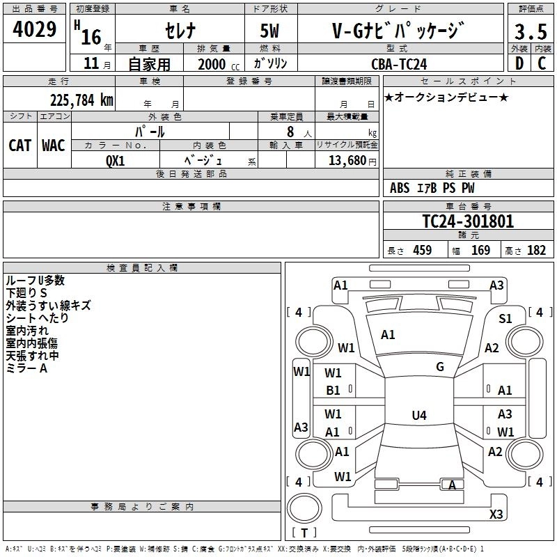 | V-G | CBA-TC24 | QR20DE(NEO) | FF | CVT | 1998cc | 147ps(108kW)/6000rpm | AИ-92 | 2 205 000 | |