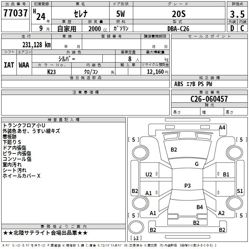 | 20S | DBA-C26 | MR20DD | FF | CVT | 1997cc | 147ps(108kW)/5600rpm | AИ-92 | 2 163 000 |