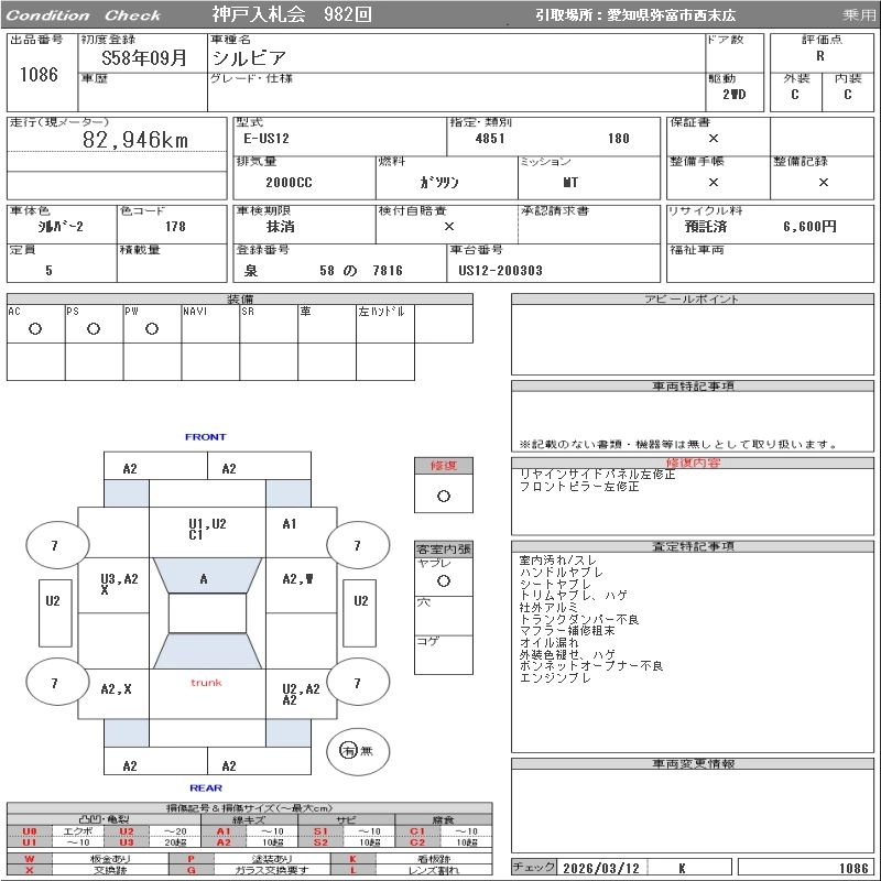 Статус выставлен на аукцион Лот 1086 Аукцион ORIX Kobe Дата аукциона 17.03.2026