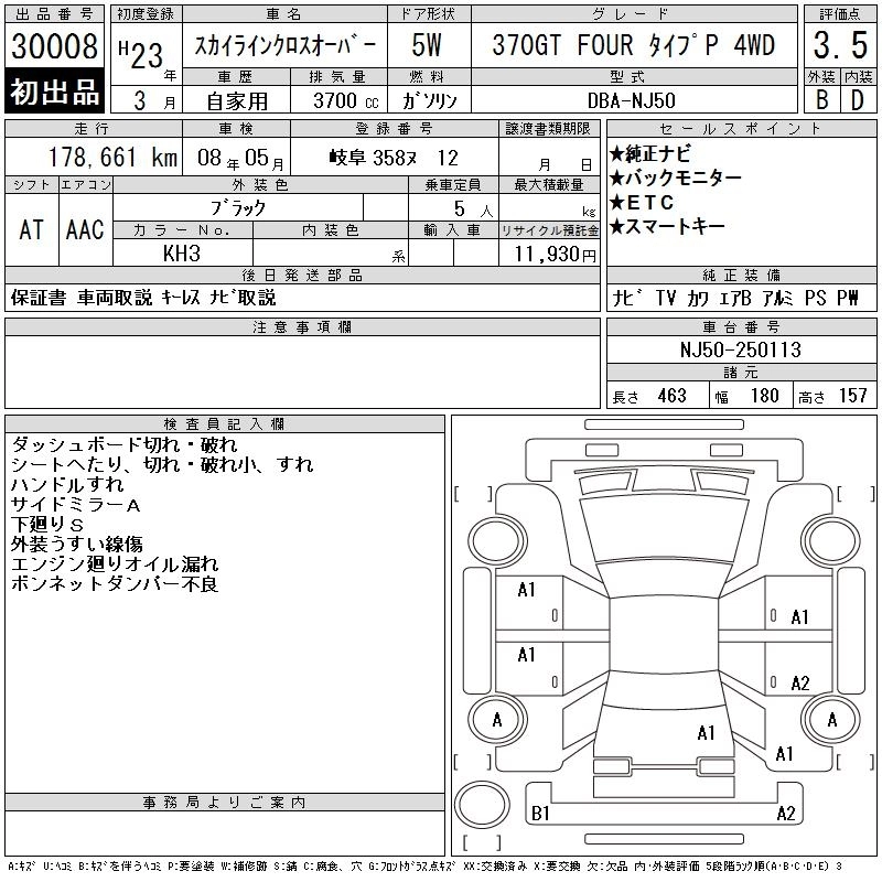 Год выпуска2011 Пробег 179 000 км КузовNJ50 Комплектация370GT FOUR TYPE P 4WD