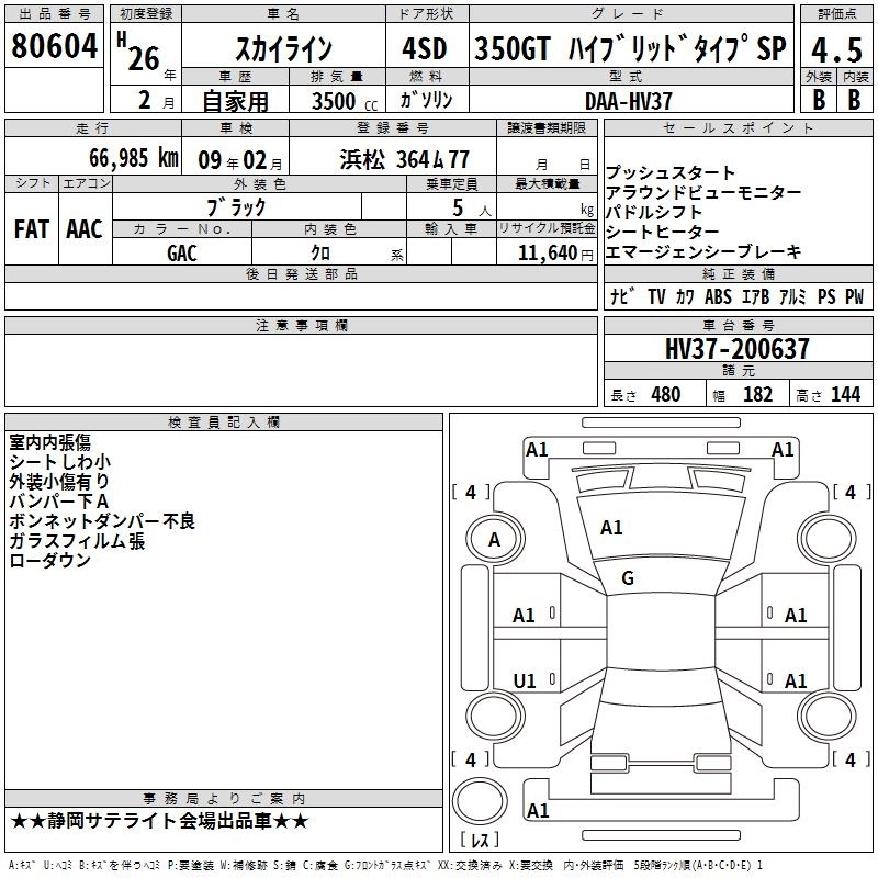 | 350GT FOUR HYBRID TYPE SP | DAA-HNV37 | VQ35HR | Full-time 4WD | 7AT | 3498cc | 306ps(225kW)/6800rpm | AИ-95 | 5 537 700 | |