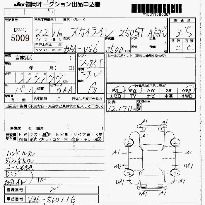 | 250GT FOUR TYPE P | DBA-NV36 | VQ25HR | Full-time 4WD | 5AT | 2495cc | 225ps(165kW)/6400rpm | AИ-95 | 4 116 000 | |