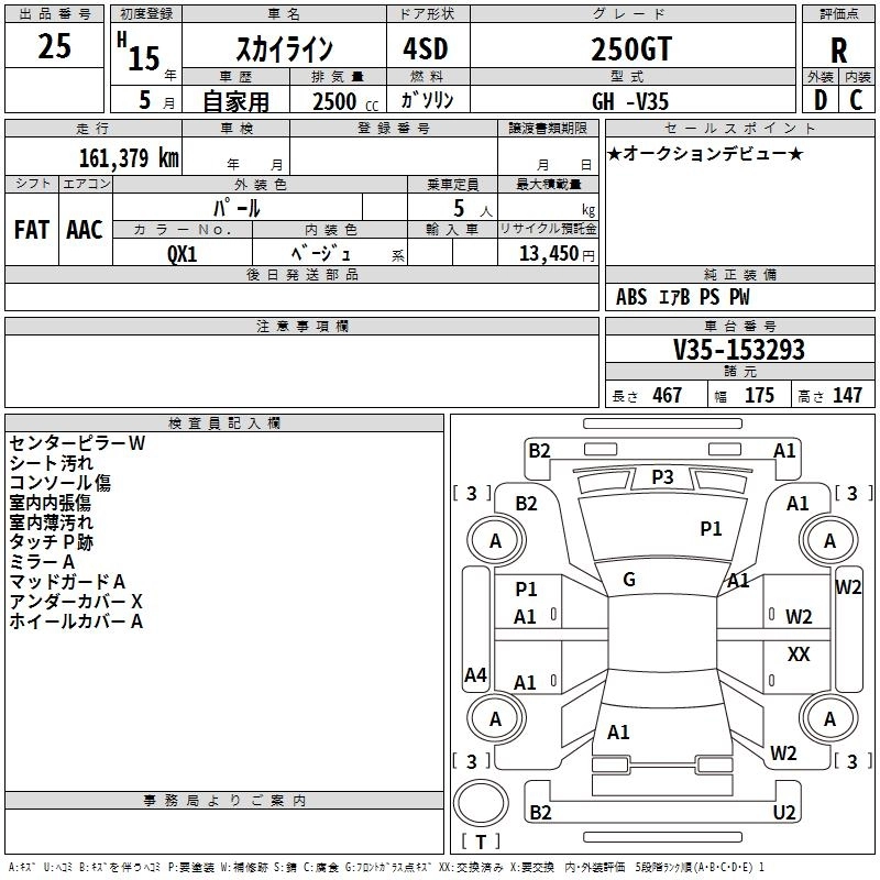 | 250GT GTM FOUR | GH-NV35 | VQ25DD(NEO Di) | Full-time 4WD | 5AT | 2495cc | 215ps(158kW)/6400rpm | AИ-95 | 2 820 000 | |