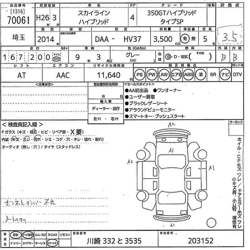 | 350GT HYBRID TYPE P | DAA-HV37 | VQ35HR | FR | 7AT | 3498cc | 306ps(225kW)/6800rpm | AИ-95 | 4 863 600 | |