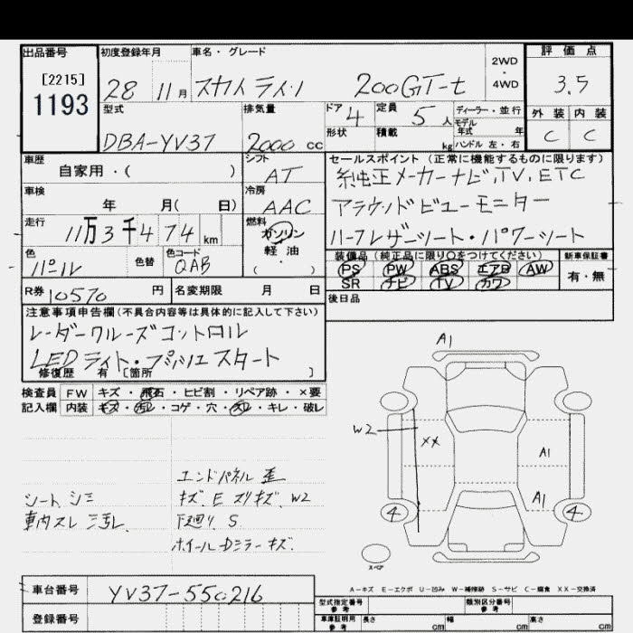 | 200GT-T TYPE P | DBA-YV37 | 274A | FR | 7AT | 1991cc | 211ps(155kW)/5500rpm | AИ-95 | 4 345 920 | |