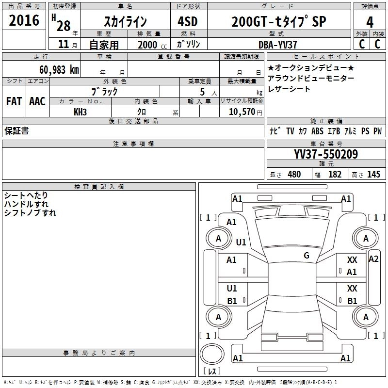 | 200GT-T TYPE SP 60TH LIMITED | DBA-YV37 | 274A | FR | 7AT | 1991cc | 211ps(155kW)/5500rpm | AИ-95 | 4 963 680 | |